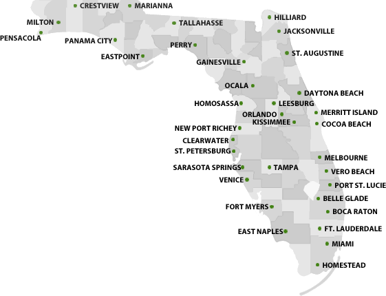 Mapa de florida con ciudades.